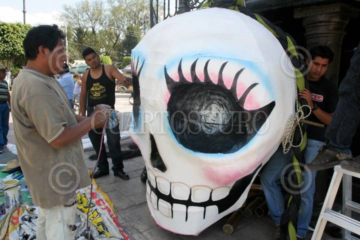 TULTEPEC, ESTADO DE MÉXICO, 31OCTUBRE2010.- La Catrina "Revolucionaria que mide aproximadamente 14 metros de altura, se puede apreciar en la explanada municipal para la gente que acuda a los festejos del dia de muertos. FOTO: ENRIQUE ORDÓÑEZ/CUARTOSCURO.COM