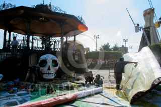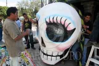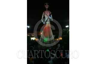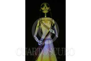 TULTEPEC, ESTADO DE MÉXICO, 31OCTUBRE2010.- La Catrina "Revolucionaria que mide aproximadamente 14 metros de altura, se puede apreciar en la explanada municipal para la gente que acuda a los festejos del dia de muertos. FOTO: ENRIQUE ORDÓÑEZ/CUARTOSCURO.COM
