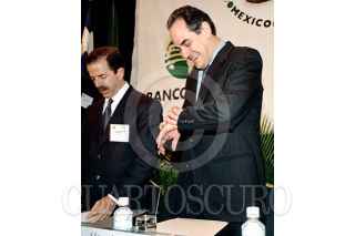 Enrique Vilatela, dorector de Bancomext y Herminio Balnco, secretario de comercio, durante la inauguracion del foro: "Mexico-Union Europea" en donde se discutieron temas comunes.