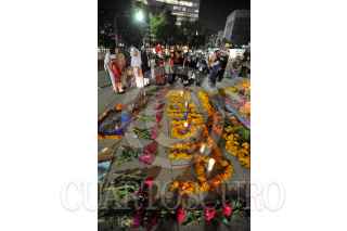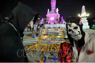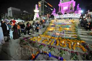 MÉXICO, D.F., 01NOVIEMBRE2010.- Hoy por la noche en las escalinatas del Ángel de la Independencia, se realizó una ofrenda y una manifestación en contra de la violencia que se ha desatado en los últimos años y que ah causado la perdida de miles de victimas entre las que destacan la de jóvenes y niños. FOTO: LUIS CARBAYO/CUARTOSCURO.COM