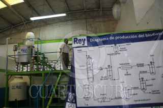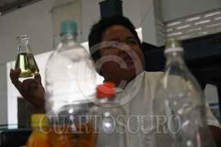 VILLAHERMOSA, TABASCO, 03NOVIEMBRE2010.- Eden Custodio, ingeniero investigador independiente, dio a conocer en conferencia la creación de la nueva Planta Piloto de Biodiesel, la cual se ubica dentro de las instalaciones de la agencia Volkswagen Grijalva. Detalla que actualmente producen 450 litros del combustible reciclado de aceite vegetal comestible el cual esta siendo utilizado por transportistas del municipio de Comalcalco y se esta probando en autos sedan de la agencia Volkswagen y los cuales han desempeñado perfectamente, reduciendo notablemente los contaminantes y eficientando la combustión interna y de mantenimiento. FOTO: MARCO POLO GUZMÁN HERNÁNDEZ/CUARTOSCURO.COM