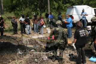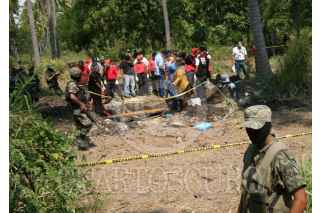 ACAPULCO, GUERRERO, 03NOVIEMBRE2010.- Aspectos de los trabajos de excavación que se llevan a cabo en la narcofosa ubicada en los predios de una huerta en las inmediaciones del poblado de Tunzingo, zona rural de Acapulco, de donde hasta el momento han sido rescatados al menos 11 cuerpos. FOTO: OSCAR ALVARADO/CUARTOSCURO.COM