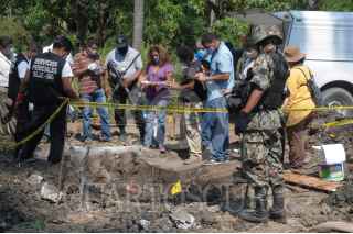 ACAPULCO, GUERRERO, 03NOVIEMBRE2010.- Personal de la Procuraduría General de Justicia del estado y de la (PGR), y elementos de la Marina, realizaron trabajos de excavación en una huerta localizada en el poblado de Tuncingo, donde hasta el momento se han localizado 18 cuerpos, los cuales presuntamente podrían ser vinculados con los 20 michaocanos desaparecidos desde el mes pasado. FOTO: JORGE ALBERTO HERNÁNDEZ/CUARTOSCURO.COM