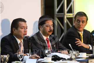 MÉXICO, D.F., 04NOVIEMBRE2010.- Mario Delgado, secretario de Educación, Juan de Dios Barba Nava, de la Confederación Patronal de la República Mexicana y Marcelo Ebard, jefe de gobierno del Distrito Federal durante el encuentro con Cámaras de Comercio "Por un Presupuesto Digno para la Ciudad" que se realizo en el Club de Banqueros. FOTO: RODOLFO ANGULO/CUARTOSCURO.COM