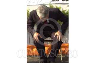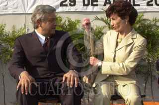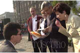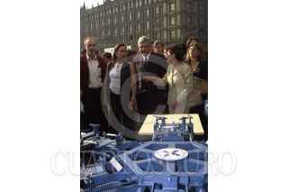 México D.F 29 Abril 2004.- Andrés Manuel López Obrador, jefe de gobierno del D.F junto con Jeny Santiel secretaria de Desarrollo Social del D.F entregaron equipo de apoyo a personas invidentes en el zócalo capitalino. FOTO: Eunice Adorno/CUARTOSCURO.COM