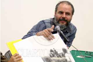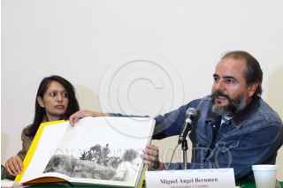 MÉXICO, D.F., 05NOVIEMBRE2010.- Miguel Ángel Berumen, curador e investigador, durante la presentación del libro "México: Fotografía y Revolución", proyecto auspiciado por Fundación Televisa. La próxima semana será inaugurada una exposición con 100 fotos, seleccionadas de las 400 que integran la edición, en la Galería Abierta de las Rejas de Chapultepec. El anuncio se realizó en el Museo de la Ciudad de México. FOTO: MOISÉS PABLO/CUARTOSCURO.COM