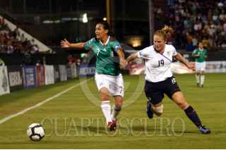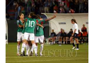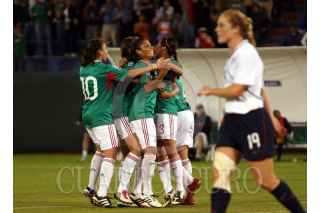 CANCÚN, QUINTANA ROO, 05NOVIEMBRE2010.- La Selección Mexicana de fútbol le gano a la escuadra norteamericana 2-1 en el premundial femenil CONCACAF en el estadio Beto Ávila de Cancún. Los goles nacionales fueron de Verónica Pérez y Maribel Domínguez, con esta victoria las tricolores ganaron su pase al mundial de la especialidad que se realizará en Alemania el próximo año. FOTO: AMARANTA PRIETO/CUARTOSCURO.COM