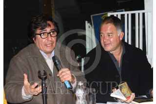 MÉXICO, D.F., 05NOVIEMBRE2010.- David Aponte, periodista, presentó su libro "Infiltrados", el cual habla sobre sobre la corrupción que provoca el narcotráfico en México. Esto se realizó en un conocido restaurante de la colonia Condesa. FOTO: MISAEL VALTIERRA/CUARTOSCURO.COM