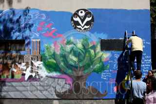 MÉXICO, D.F., 06NOVIEMBRE2010.- Un mural titulado “Construyendo Unidades Habitacionales” que se realizo en el edificio Narciso Mendoza de la unidad habitacional Tlatelolco fue inaugurado este día como parte del programa de recuperación de espacios. FOTO: RODOLFO ANGULO/CUARTOSCURO.COM