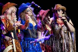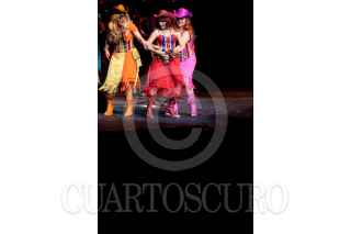 MÉXICO, D.F., 07NOVIEMBRE2010.- La noche de ayer se realizó la primera función de La Banda de las Recodas, en el marco de la Quinta Muestra de Artes Escénicas en el Teatro de la Ciudad Esperanza Iris. Interpretada por Las Reynas Chulas, las hermanas Carrilla (La Chikis, La Chakis, La Güera y La Barbie), hacen una sátira con humor de lo que ocurre en la actualidad en México (violencia, crísis económica y política). FOTO: MISAEL VALTIERRA/CUARTOSCURO.COM