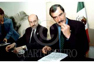 El candidato presidencial panista Vicente Fox ofrecio una conferencia de prensa al termino de su reunion con integrantes del Parlamento Europeo.