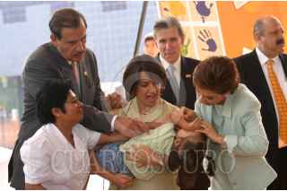 México, D. F. 30 Abril 2004.- El presidente Vicente Fox besa a un niño después de darle su vacuna, durante la ceremonia del inició de la segunda semana nacional de vacunación. FOTO: Nelly Salas/CUARTOSCURO.COM