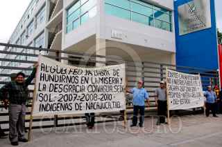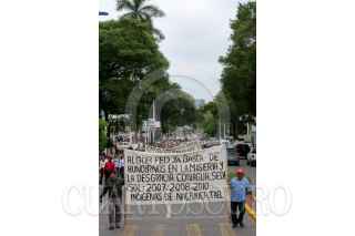 VILLAHERMOSA, TABASCO, 08NOVIEMBRE2010.- Alrededor de 400 habitantes de Huatacalca, Belen, Oxiacaque, Chiflón, El Sitio, Isla Guadalupe, Pastal y Chicozapote (comunidad chontal con dialecto zoque) marchan por el Paseo Tabasco en protesta por la falta de ayuda, ya que a tres meses aun permanecen inundados. Así mismo tomaron las instalaciones de la CONAGUA y mantienen cerrado al flujo vehicular el Paseo Tabasco esquina avenida 27 de Febrero en donde amenazan con permanecer tres día si es que no les resuelven sus demandas. FOTO: MARCO POLO GUZMÁN HERNÁNDEZ/CUARTOSCURO.COM