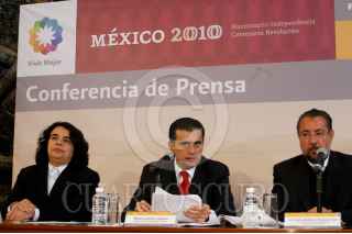 MÉXICO D.F., 08NOVIEMBRE2010.- Alonso Lujambio, Secretario de Educación Publica, acompañado de Consuelo Sáizar, Presidenta de COACULTA y Manuel Villalpando, Coordinador Ejecutivo Nacional para las Conmemoraciones del 2010, dio a conocer los pormenores del próximo festejo del Centenario de la Revolución Mexicana. FOTO: GUILLERMO PEREA/CUARTOSCURO.COM