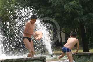 México, D. F. 30 Abril 2004.- En la fuentes del bosque de Chapultepec juegan dos hermanitos este día del niño. FOTO: Nelly Salas/CUARTOSCURO.COM