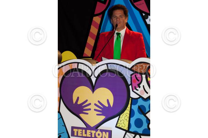 MÉXICO, D.F., 08NOVIEMBRE2010.- Romero Britto, artista plástico brasileño, ofreció un mensaje a los medios de comunicación y a los presentes durante el anuncio del lanzamiento del proyecto "Romero BrittoTeletón 2010", donde el artista plástico crea la imagen para el Teletón 2010 que se realizará el próximo 3 y 4 de diciembre. FOTO: MISAEL VALTIERRA/CUARTOSCURO.COM