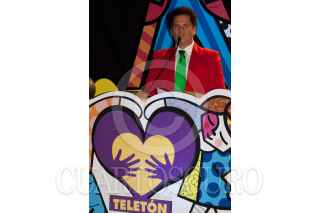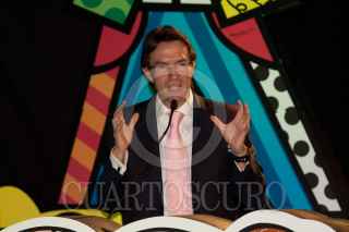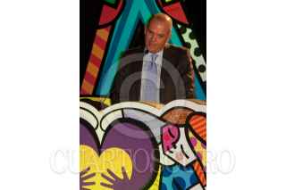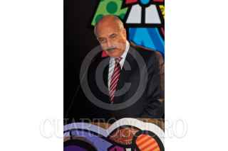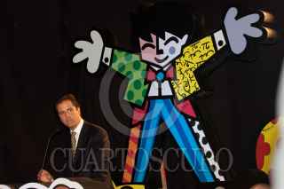 MÉXICO, D.F., 08NOVIEMBRE2010.- Romero Britto, artista plástico brasileño, ofreció un mensaje a los medios de comunicación y a los presentes durante el anuncio del lanzamiento del proyecto "Romero BrittoTeletón 2010", donde el artista plástico crea la imagen para el Teletón 2010 que se realizará el próximo 3 y 4 de diciembre. FOTO: MISAEL VALTIERRA/CUARTOSCURO.COM