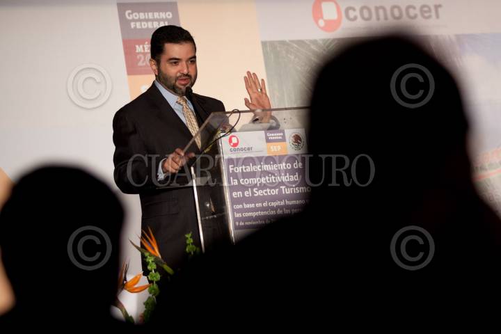 MÉXICO, D.F., 09NOVIEMBRE2010.- Miguel Ángel Martínez Espinoza, subsecretario de Educación Media Superior, encabezó e inauguró el foro "Estrategias para el Fortalecimiento del Capital Humano del Sector, con base en las competencias de las personas del Sector Turismo" que organiza el Consejo Nacional de Normalización y Certificación de Competencias Laborales oficina dependiente de la Secretaría de Educación Pública (SEP). Esto se realizó en un conocido hotel de la avenida Paseo de la Reforma. FOTO: MISAEL VALTIERRA/CUARTOSCURO.COM