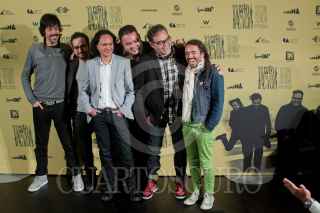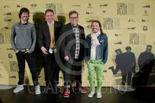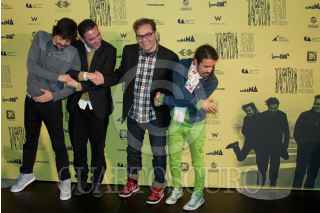 MÉXICO, D.F., 09NOVIEMBRE2010.- Meme, Quique, Joselo y Rubén, integrantes de la banda mexicana Café Tacuva, posaron para las cámaras al final de la conferencia de prensa que ofreció esta agrupación con motivo del lanzamiento de su nuevo documental "Café Tacuva, Seguir Siendo", una película de Ernesto Contreras y José Manuel Cravioto. Esto se realizó en un conocido hotel de la colonia Polanco. FOTO: MISAEL VALTIERRA/CUARTOSCURO.COM