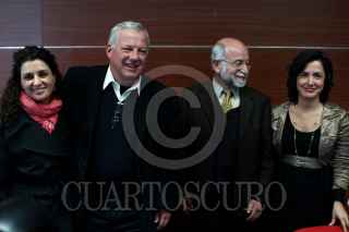 MÉXICO, D.F., 10NOVIEMBRE2010.- Cecilia Sayeg de ICESI; Federico Reyes Heroles, de la Fundación Este País; Luis de la Barreda de ICESI y Edna Jaime de la organización México Evalúa durante una conferencia de prensa con el fin de hacer público un posicionamiento frente al incumplimiento del compromiso presidencial, de suministrar los insumos para la realización de la Encuesta Nacional de Inseguridad que se realizo en instalaciones de la Canacintra. FOTO: RODOLFO ANGULO/CUARTOSCURO.COM