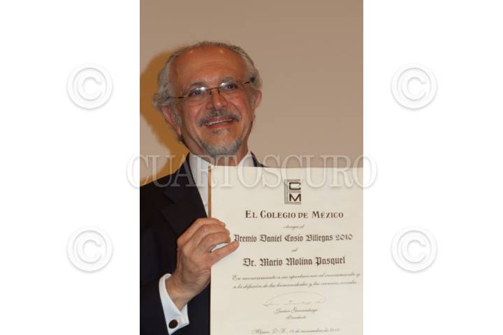MÉXICO, D.F., 10NOVIEMBRE2010.- El Doctor Mario Molina, Premio Nóbel de Química 1995, recibió un reconocimiento (Premio Daniel Cosío Villegas 2010) de la comunidad del Colegio de México dentro del marco del 70 aniversario de esta institución educativa. Esto se realizó en las instalaciones del Colmex al sur de la Ciudad de México. FOTO: MISAEL VALTIERRA/CUARTOSCURO.COM