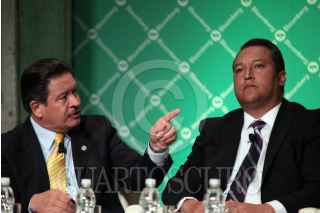 MÉXICO, D.F., 10NOVIEMBRE2010.- Carlos Navarrete Ruiz, coordinador de los senadores del PRD, participó en el Foro "Bloomberg México Cumbre Económica", con el tema Gobernabilidad y la Guerra contra el Narcotráfico. Al evento asistieron José Francisco Blake, secretario de Gobernación, Mauro Leos-López, vicepresidente de Moody´s Investors Service y Sergio Méndez, director de inversiones de Afore XXI. FOTO: CUARTOSCURO.COM