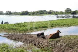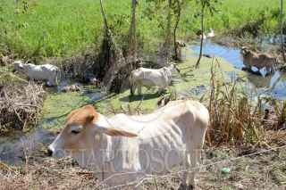 NACAJUCA, TABASCO, 11NOVIEMBRE2010.- El campo ganadero chontal se ve afectado severamente a tres meses de las inundaciones. Los campesinos de esta zona manifiestan que cientos de semientes están enflaqueciendo por falta de pastura provocando bajo rendimiento en leche y que los grandes ganaderos aprovechan la situación para adquirir este ganado a precios bajos ya que muchas reces han muerto. FOTO: MARCO POLO GUZMÁN HERNÁNDEZ/CUARTOSCURO.COM