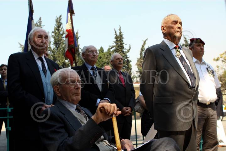 MÉXICO, D.F., 11NOVIEMBRE2010.- Veteranos de guerra durante la ceremonia de conmemoración del 92° aniversario del armisticio firmado el 11 de noviembre de 1918 que marcó el final de la Primera Guerra Mundial que se realizo en el panteón Francés de La Piedad. FOTO: RODOLFO ANGULO/CUARTOSCURO.COM