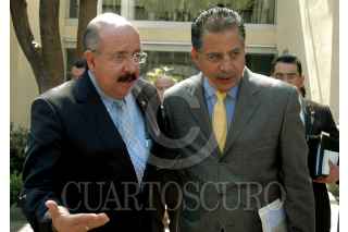 MÉXICO D.F., 11NOVIEMBRE2010.- Rafael López Castañares, Secretario General Ejecutivo de la ANUIES junto a Jesús Ortega, Presidente del PRD durante la reunión que sostuvieron. FOTO: CUARTOSCURO.COM