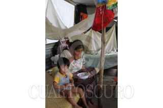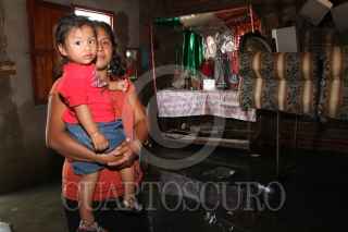 NACAJUCA, TABASCO, 11NOVIEMBRE2010.- Al menos cincuenta familias chontales de Oxiacaque, el Chiflón, Chicozapote y Pastal tienen casas hechas de lamina, plástico y tela sobre la cinta asfaltica debido a que sus casas aun permanecen inundadas. FOTO: MARCO POLO GUZMÁN HERNÁNDEZ/CUARTOSCURO.COM