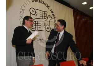 MÉXICO, D.F., 11NOVIEMBRE2010.- José Woldenberg, consejero de la CNDH del Distrito Federal y Luis Gonzalez Placencia, presidente de la CNDH-DF, en conferencia de prensa dieron a conocer el informe sobre el seguimiento de la recomendación 04/2009 del caso Casitas de Sur. FOTO: SAÚL LÓPEZCUARTOSCURO.COM