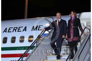 YOKOHAMA, JAPON, 12NOVIEMBRE2010.- Felipe Calderón, Presidente de México, en compañía con su esposa, Margarita Zavala, arribaron al aeropuerto Internacional de la Ciudad para participar en la XVIII reunión de lideres económicos de APEC. FOTO: FRANCISCO SANTOS/CUARTOSCURO.COM