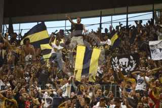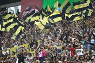 MÉXICO, D.F., 14NOVIEMBRE2010.- Aficionados de los Pumas de la UNAM festejan la victoria de su victoria de 1 gol por 0 en contra de Aguilas del América durante el encuentro de la jornada 17 del futbol mexicano que se realizo en el Estadio Azteca. FOTO: RODOLFO ANGULO/CUARTOSCURO.COM