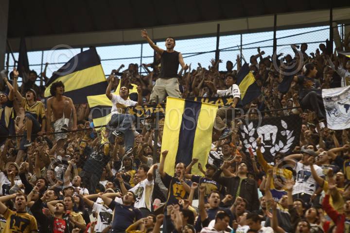 MÉXICO, D.F., 14NOVIEMBRE2010.- Aficionados de los Pumas de la UNAM festejan la victoria de su victoria de 1 gol por 0 en contra de Aguilas del América durante el encuentro de la jornada 17 del futbol mexicano que se realizo en el Estadio Azteca. FOTO: RODOLFO ANGULO/CUARTOSCURO.COM