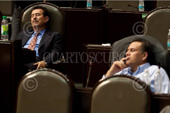 MÉXICO, D.F., 16NOVIEMBRE2010.- Luis Enrique Mercado (izquierda), Diputado del Partido Acción Nacional (PAN), toma una siesta durante la Sesión solemne de la Cámara de Diputados donde se aprobó el Presupuesto de Egresos 2011. FOTO: MISAEL VALTIERRA/CUARTOSCURO.COM