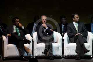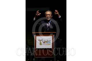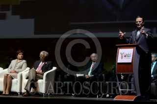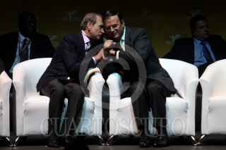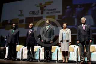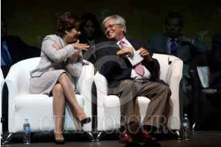 MÉXICO, D.F., 18NOVIEMBRE2010.- Patricia Espinoza, secretaria de Relaciones Exteriores conversa con Joan Clos, director ejecutivo de ONU - Habitat durante la ceremonia de apertura de la Cumbre Mundial de Líderes Locales y Regionales 2010 que se realizo en el Teatro Metropolitan. FOTO: RODOLFO ANGULO/CUARTOSCURO.COM