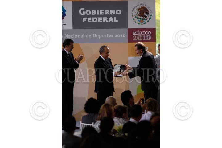 MÉXICO, D.F., 20NOVIEMBRE2010.- Joakim Agustín Soria Ramos, Teócrito Arteaga Nochebuena, Alonso Lujambio Irazábal, Secretario de Educación Pública; Felipe "Tibio" Muñoz, Bernardo de la garza, titular de la CONADE; Paola Michelle Longoria, Juan René Serrano Gutiérrez, durante la entrega del premio Nacional del Deporte. FOTO: IVAN STEPHENS/CUARTOSCURO.COM