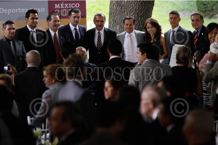 MÉXICO, D.F., 20NOVIEMBRE2010.- Joakim Agustín Soria Ramos, Teócrito Arteaga Nochebuena, Alonso Lujambio Irazábal, Secretario de Educación Pública; Felipe "Tibio" Muñoz, Bernardo de la garza, titular de la CONADE; Paola Michelle Longoria, Juan René Serrano Gutiérrez, durante la entrega del premio Nacional del Deporte. FOTO: IVAN STEPHENS/CUARTOSCURO.COM