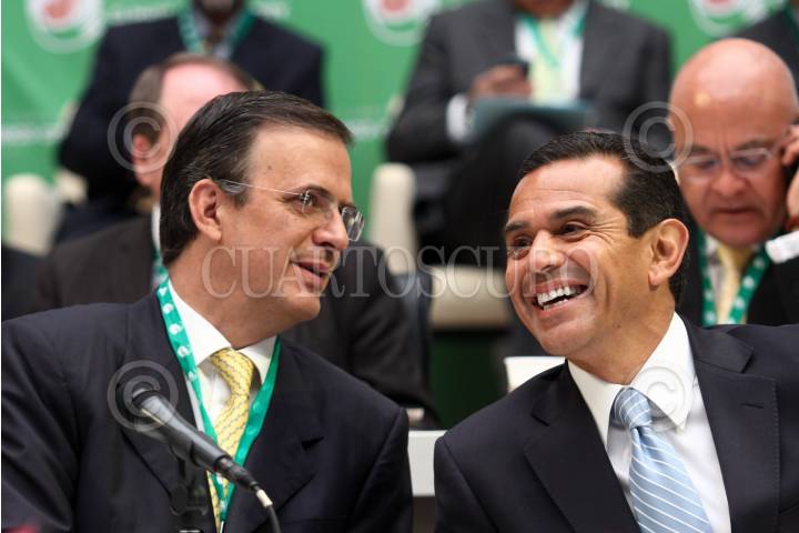 MÉXICO, D.F., 21NOVIEMBRE2010.- Marcelo Ebrard, jefe de gobierno de Distrito Federal conversa con alcades de ciudades de África durante un receso en la sesión plenaria de la Cumbre Mundial de Alcaldes sobre Cambio Climático que se realiza en el Palacio de la Escuela de Medicina. FOTO: RODOLFO ANGULO/CUARTOSCURO.COM
