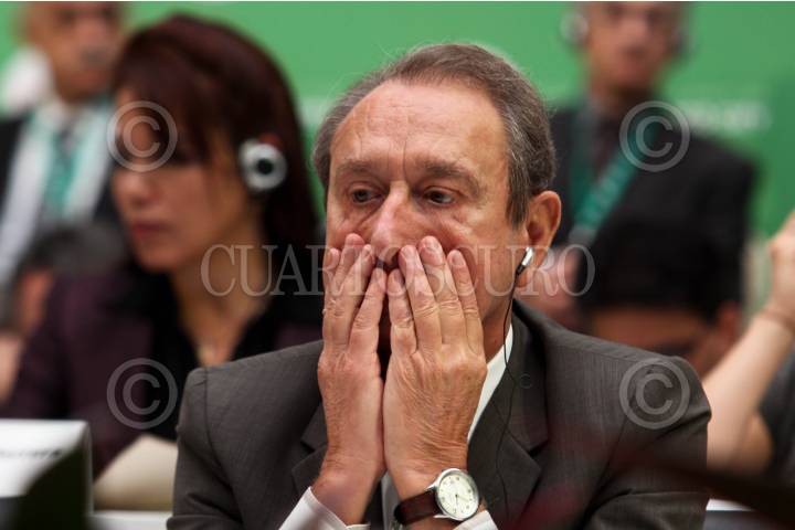 MÉXICO, D.F., 21NOVIEMBRE2010.- Marcelo Ebrard, jefe de gobierno de Distrito Federal conversa con alcades de ciudades de África durante un receso en la sesión plenaria de la Cumbre Mundial de Alcaldes sobre Cambio Climático que se realiza en el Palacio de la Escuela de Medicina. FOTO: RODOLFO ANGULO/CUARTOSCURO.COM