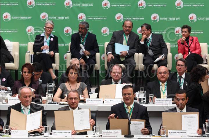 MÉXICO, D.F., 21NOVIEMBRE2010.- Marcelo Ebrard, jefe de gobierno de Distrito Federal conversa con alcades de ciudades de África durante un receso en la sesión plenaria de la Cumbre Mundial de Alcaldes sobre Cambio Climático que se realiza en el Palacio de la Escuela de Medicina. FOTO: RODOLFO ANGULO/CUARTOSCURO.COM