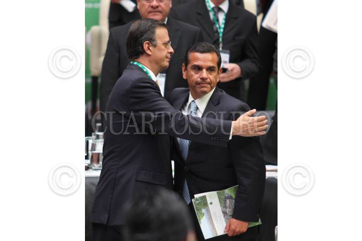 MÉXICO, D.F., 21NOVIEMBRE2010.- Marcelo Ebrard, jefe de gobierno de Distrito Federal conversa con alcades de ciudades de África durante un receso en la sesión plenaria de la Cumbre Mundial de Alcaldes sobre Cambio Climático que se realiza en el Palacio de la Escuela de Medicina. FOTO: RODOLFO ANGULO/CUARTOSCURO.COM