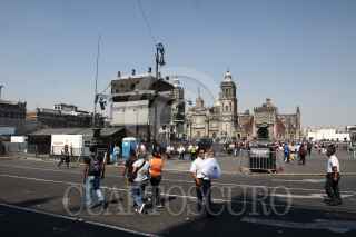 MÉXICO, D.F., 21NOVIEMBRE2010.- Aspecto del Zócalo capitalino en donde se observan las estructuras en donde hasta el día 23 de Noviembre se presentará el espectaculo Yo México en punto de las 21:00 hrs. FOTO: RODOLFO ANGULO/CUARTOSCURO.COM