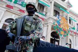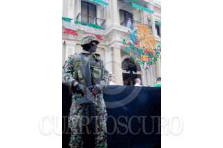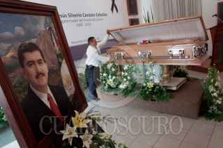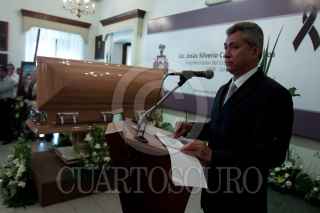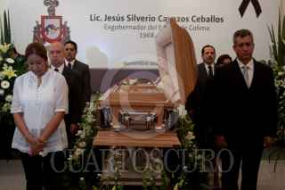 COLIMA, COLIMA, 22NOVIEMBRE2010.- El Ejército Mexicano y la Marina montó un fuerte cerco de seguridad al rededor del Palacio de Gobierno donde se realizó un homenaje de cuerpo presente al ex mandatario Silverio Cavazos Ceballos (1968-2010). El ex gobernador fue asesinado el día de ayer de tres disparos de arma de fuego a frente a su casa. FOTO: MISAEL VALTIERRA/CUARTOSCURO.COM