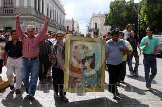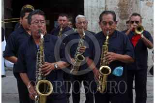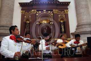 MÉRIDA, YUCATÁN, 22NOVIEMBRE2010.- Con una peregrinación y actuación de la Banda de Música del Estado; los músicos yucatecos festejaron como cada año en la Catedral San Idelfonso, a su patrona Santa Cecilia, ante la mirada de cientos de personas. FOTO: FRANCISCO BALDERAS/CUARTOSCURO.COM