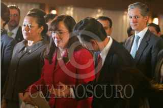TOLUCA, ESTADO DE MÉXICO, 22NOVIEMBRE2010.- Yeidckol Polevnsky Gurwitz, senadora del PRD (al centro), al finalizar el foro regional "Hacia un Marco Jurídico del Desarrollo Metropolitano", realizado en el Centro Cultural Mexiquense. FOTO: SAÚL LÓPEZ/CUARTOSCURO.COM