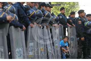MÉXICO, D.F., 23NOVIEMBRE2010.- Granaderos de la Secretaria de Seguridad Pública del Distrito Federal, encapsularon a manifestantes de la Unión Nacional de Trabajadores Agrícolas en el cruce de la avenida Taxqueña y Miramontes en la delegación Coyoacan. FOTO: SAÚL LÓPEZ/CUARTOSCURO.COM