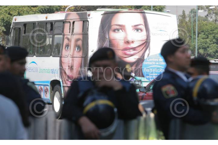 MÉXICO, D.F., 23NOVIEMBRE2010.- Granaderos de la Secretaria de Seguridad Pública del Distrito Federal, encapsularon a manifestantes de la Unión Nacional de Trabajadores Agrícolas en el cruce de la avenida Taxqueña y Miramontes en la delegación Coyoacan. FOTO: SAÚL LÓPEZ/CUARTOSCURO.COM