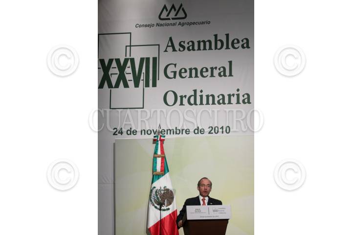 MÉXICO, D.F., 24NOVIEMBRE2010.- El presidente Felipe Calderón durante el evento de Clausura de la XXVII Asamblea General Ordinaria del Consejo Nacional Agropecuario que se realizo en un hotel del centro de la ciudad. FOTOS: RODOLFO ANGULO/CUARTOSCURO.COM