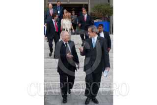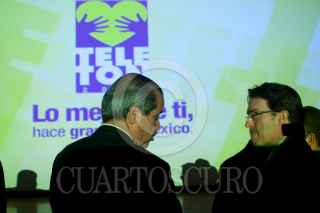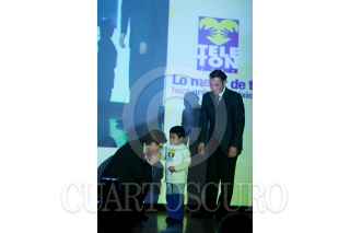 MÉXICO, D.F., 25NOVIEMBRE2010.- Fernando Landeros, presidente de la Fundación Teletón, posa para los fotógrafos besándole la mano a una niña mientras Mariano Osorio, locutor, observa la acción durante el acto en el que Fundación Teletón donó aparatos para dar radiaciones a los niños con cáncer del Instituto Nacional de Pediatría. FOTO: IVÁN STEPHENS/CUARTOSCURO.COM